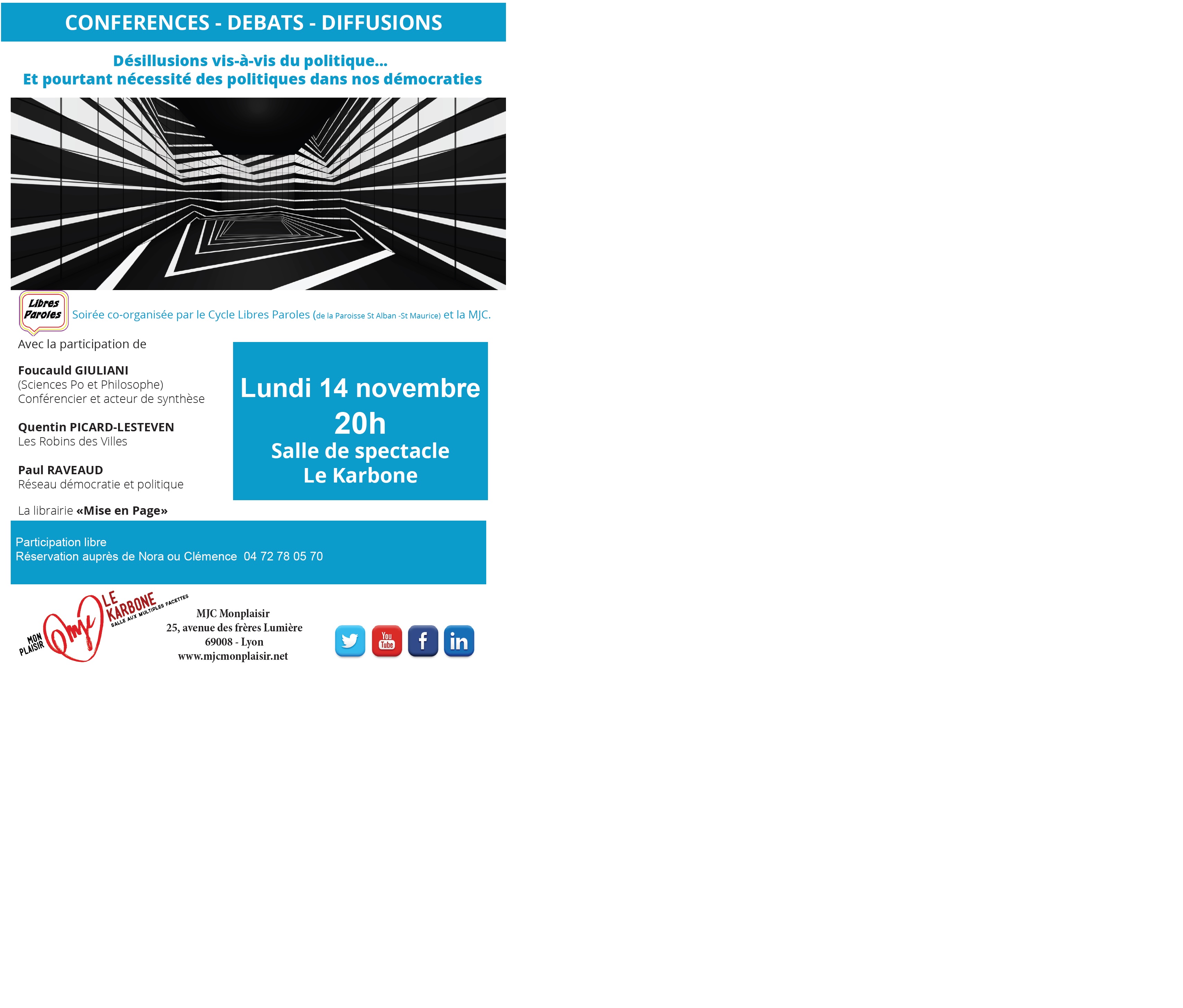 CONFÉRENCE à la MJC MONPLAISIR 14 novembre 2016 à 20 h « Désillusions vis-à-vis du politique