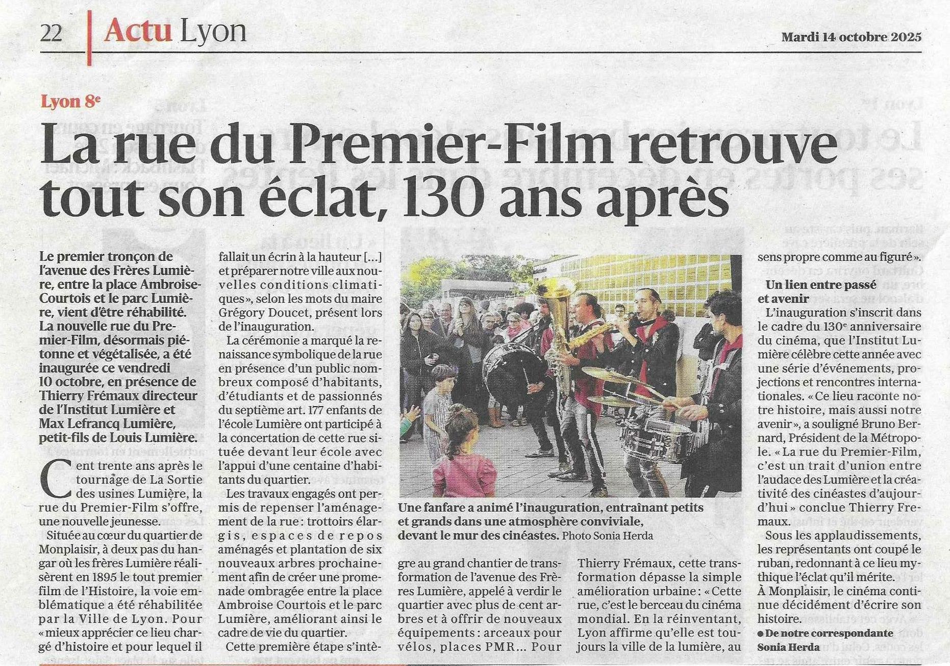 Article du Progrès : La rue du Premier-Film retrouve tout son éclat